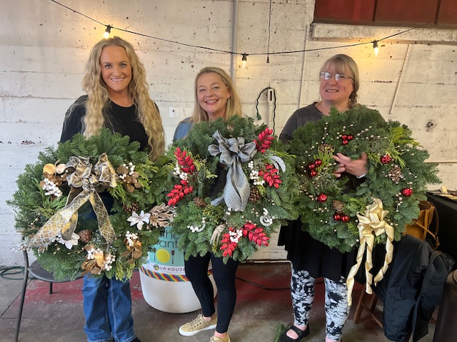 Each November we gather in the annex at Hip Chicks Do Wine for fun and festive festooning of fir wreaths. Sorry, sometimes I get carried away with alliteration. What I meant to say is "Wine & Design" where Laura on this occasion, guides workshop participants in a hand crafting exercise whilst enjoying good company and good wine. See how much fun everyone has had at past events? Want to join us? Check out Hip Chick's website for upcoming events or sign up to be on our Gifford's Flowers email list.